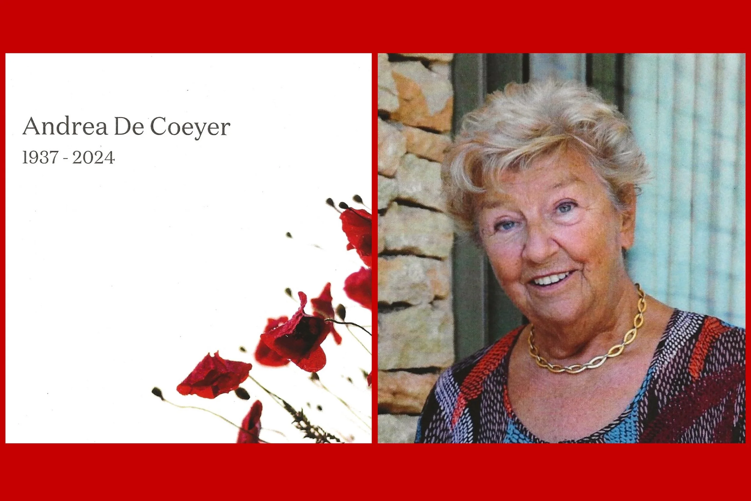 Two weeks ago was a very sad week… My Godmother, “Marraine”, Andrea passed away, not even three weeks after we last saw each other. She was the last and oldest one from three sisters, my mother’s sister, to me “my last connection” to my mother. I’m grateful I was able to fly back and forth to Belgium to attend her funeral service, to be able to say a last goodbye.